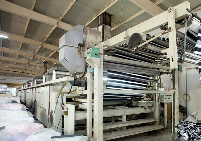 公司始终坚持高起点、高标准的发展方向,现拥有国际先进水平的织造、染色及后整理设备。主要有德国德乐、意大利ORIZIO、台湾建华等单双面及提花针织大圆机60余台;德国THIES、香港立信、意大利BRAZZOLI巴佐尼等常温和高温高压染色机40余台和后整理日本东洋开幅定型机3台,年生产各种针织光坯布5000余吨。