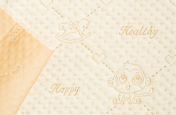 电脑提花空气层,花纹清晰,专为婴幼童设计,不含荧光增白剂,安全环保,不缩水,可作为婴幼童内衣或尿垫面料的上好选择。